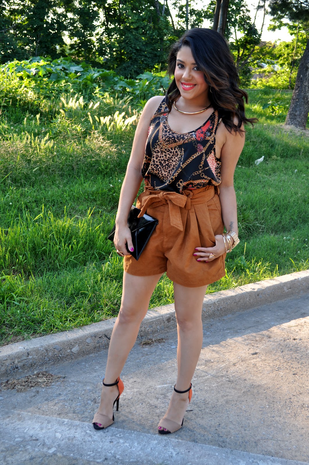 This was another shirt that I showed in my recent haul. I was really drawn to the print and color combo. I don't have many things with orange and I think it's a great color for summer. It's a high low tunic but I decided to tuck it into these high waisted suede shorts. I got these last summer and I've only worn them twice. I know it sounds a little crazy to wear suede shorts in 90 degree weather but I was honestly fine!